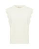 The Scallop Vest in Panna (cream) adds timeless elegance to your wardrobe. This ladies knit vest, made from luxurious merino wool, features a flattering scalloped sleeve, a classic crew neckline, and delicate stitching for a refined silhouette. Designed as a versatile layering piece, this wool vest is a stylish foundation you'll reach for time and again. Available in Panna (cream) and black, it’s an essential choice for those who appreciate quality in merino wool clothing.