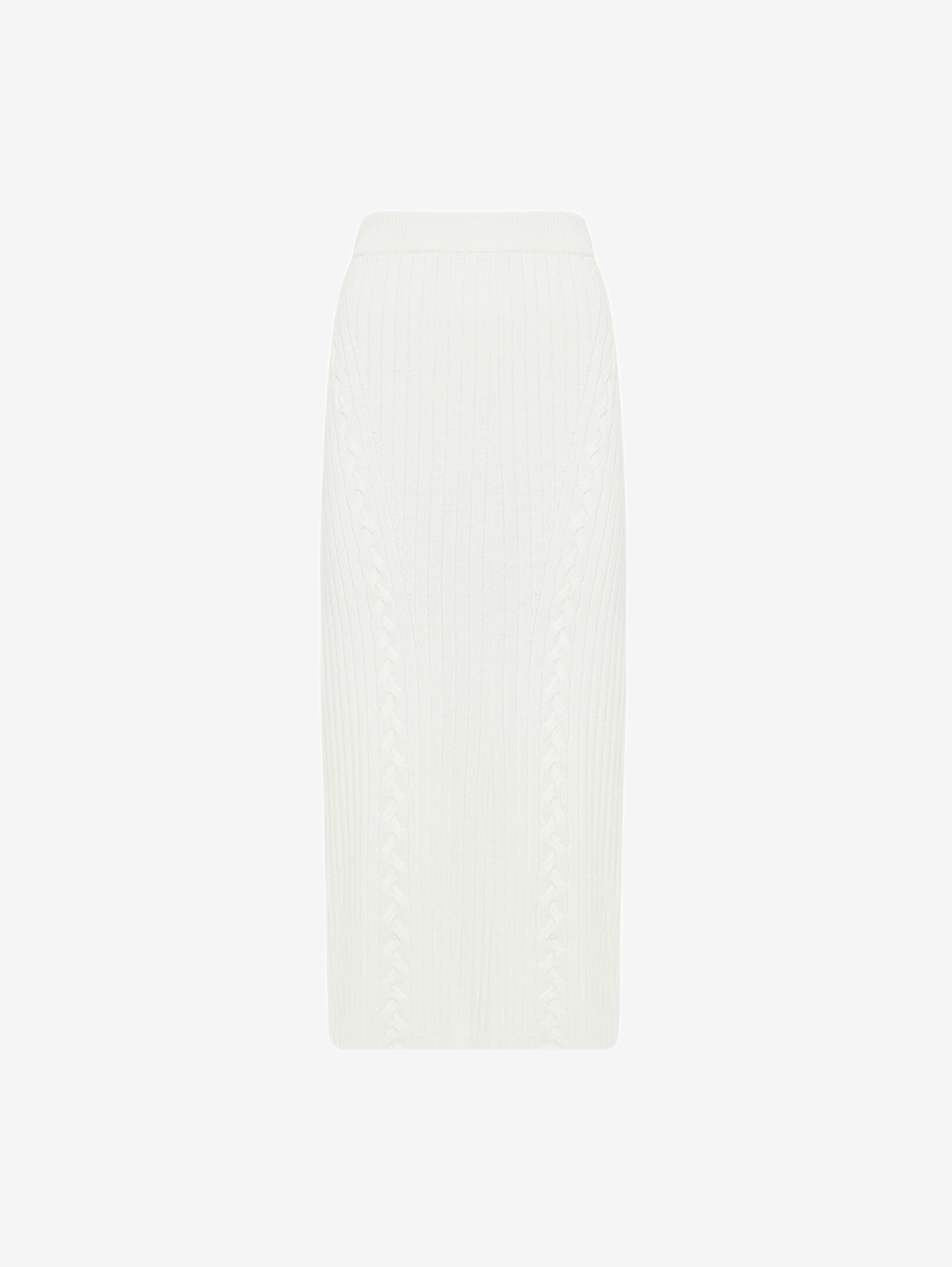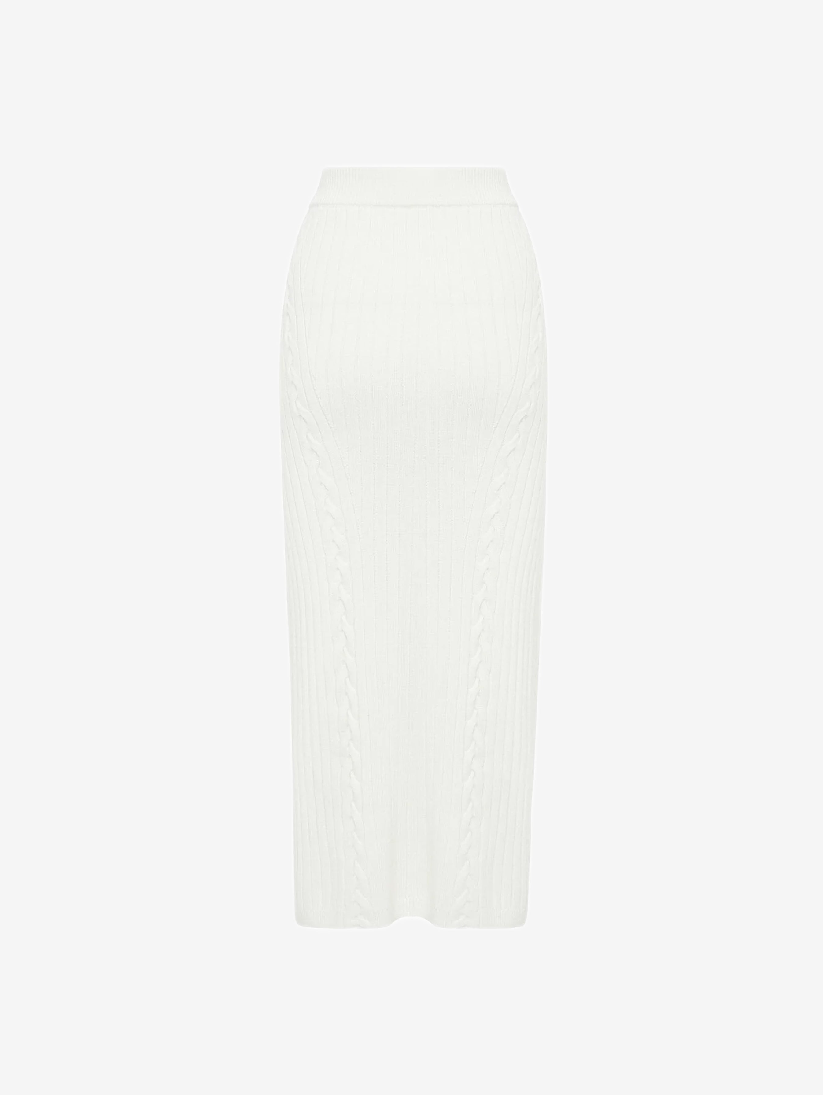 Step into luxurious comfort with the Grace Skirt in Ivory, a wool midi skirt crafted from soft merino wool. With a design that feels like wrapping up in a cozy blanket, this midi knit skirt offers effortless day-to-night versatility. A perfect addition to your merino wool garments collection, it’s made to keep you warm while looking stylish.