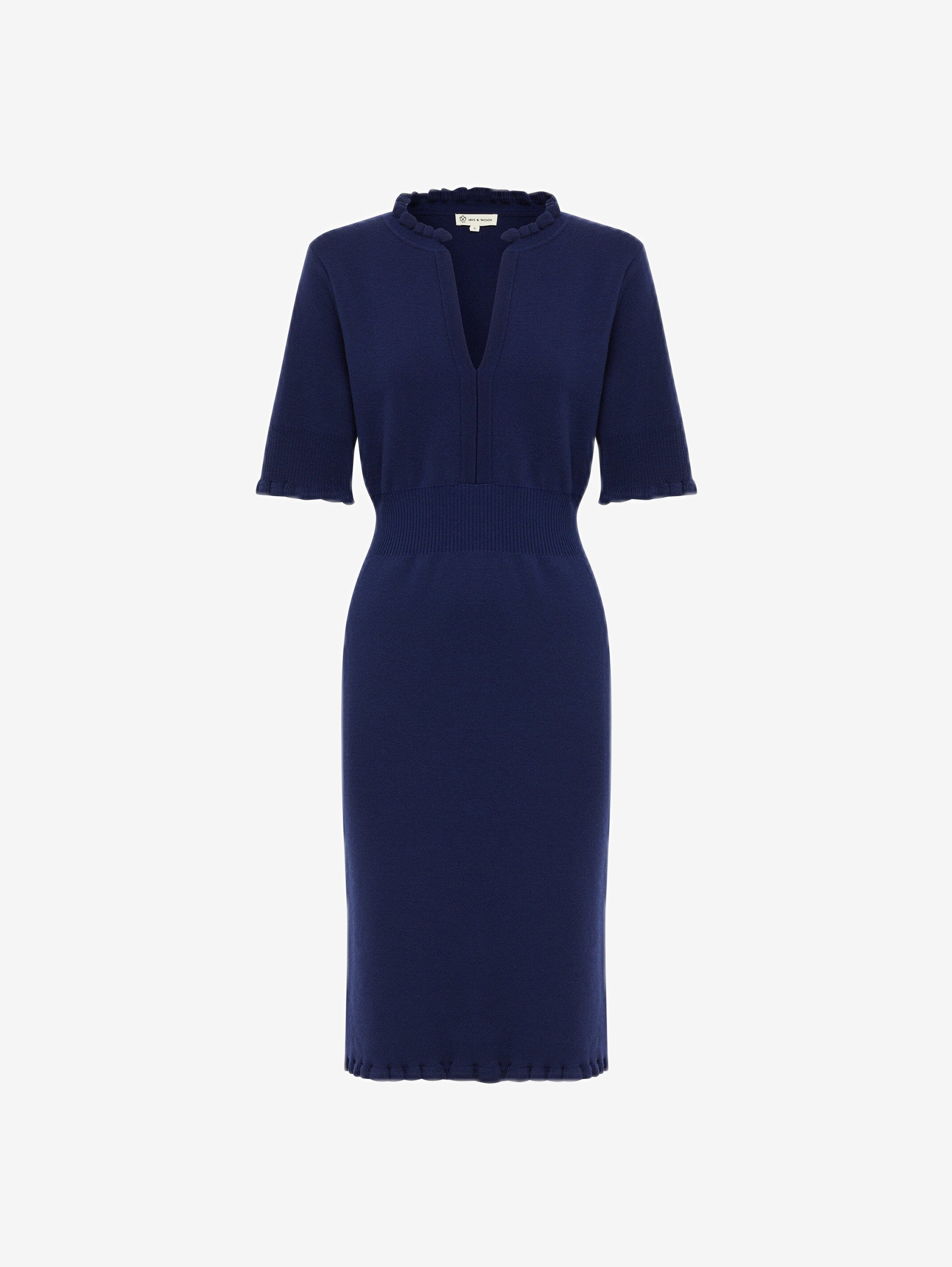 The Mini Little River Dress in Navy offers timeless elegance with a modern summer twist. Made from 100% Australian Merino Wool, this knit dress combines short sleeves and a shorter hemline for a flattering and breathable fit. Designed in collaboration with Catriona Rowntree, this wool dress brings sophistication and comfort to any warm-weather wardrobe.