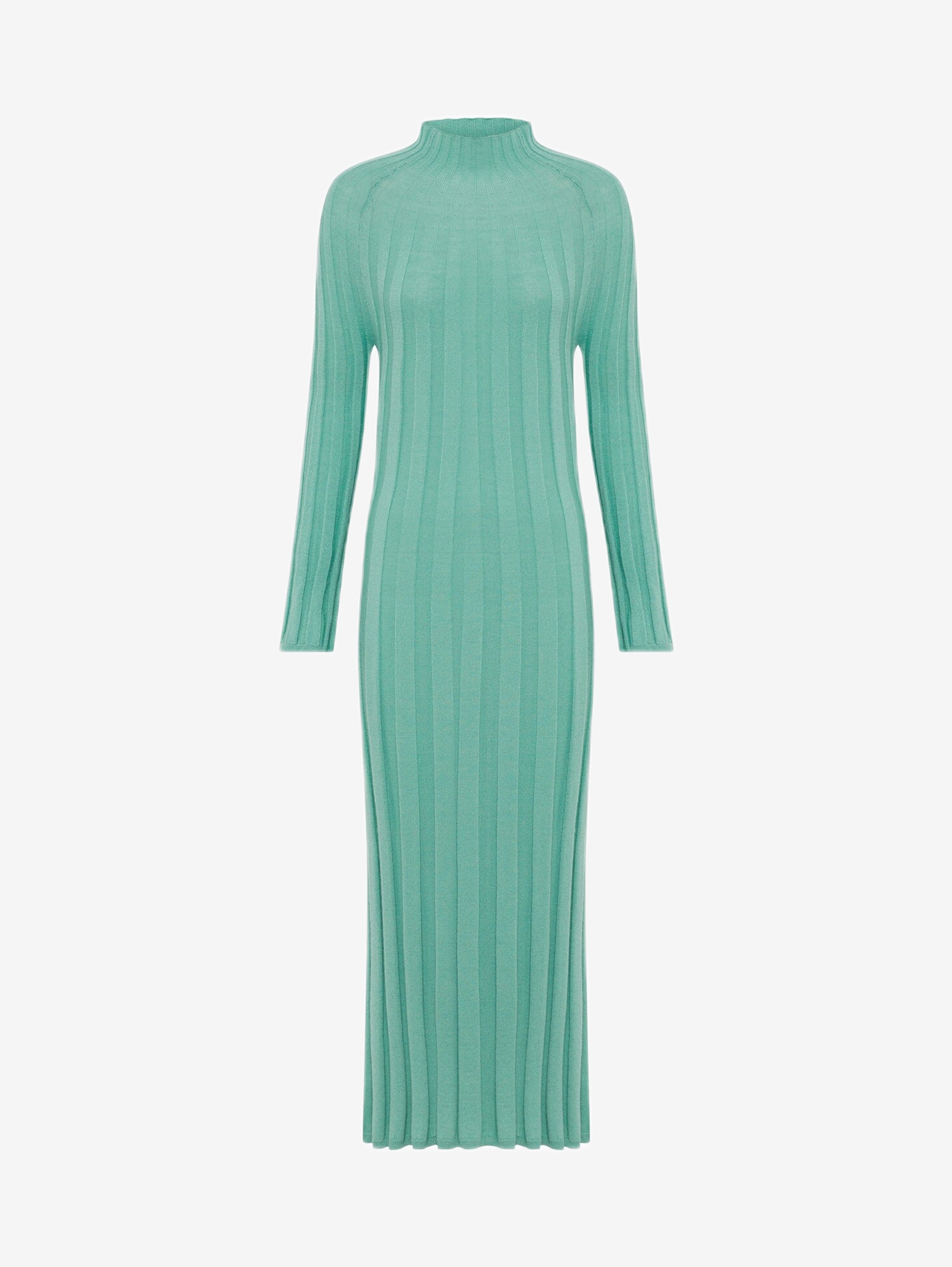 Our Poppy Knit Dress in Sage combines luxurious merino wool with timeless design. This wool dress is an essential for chilly days, featuring a streamlined silhouette that flatters any figure. Known for its warmth and elegance, this merino wool clothing item is a must-have for any winter wardrobe.