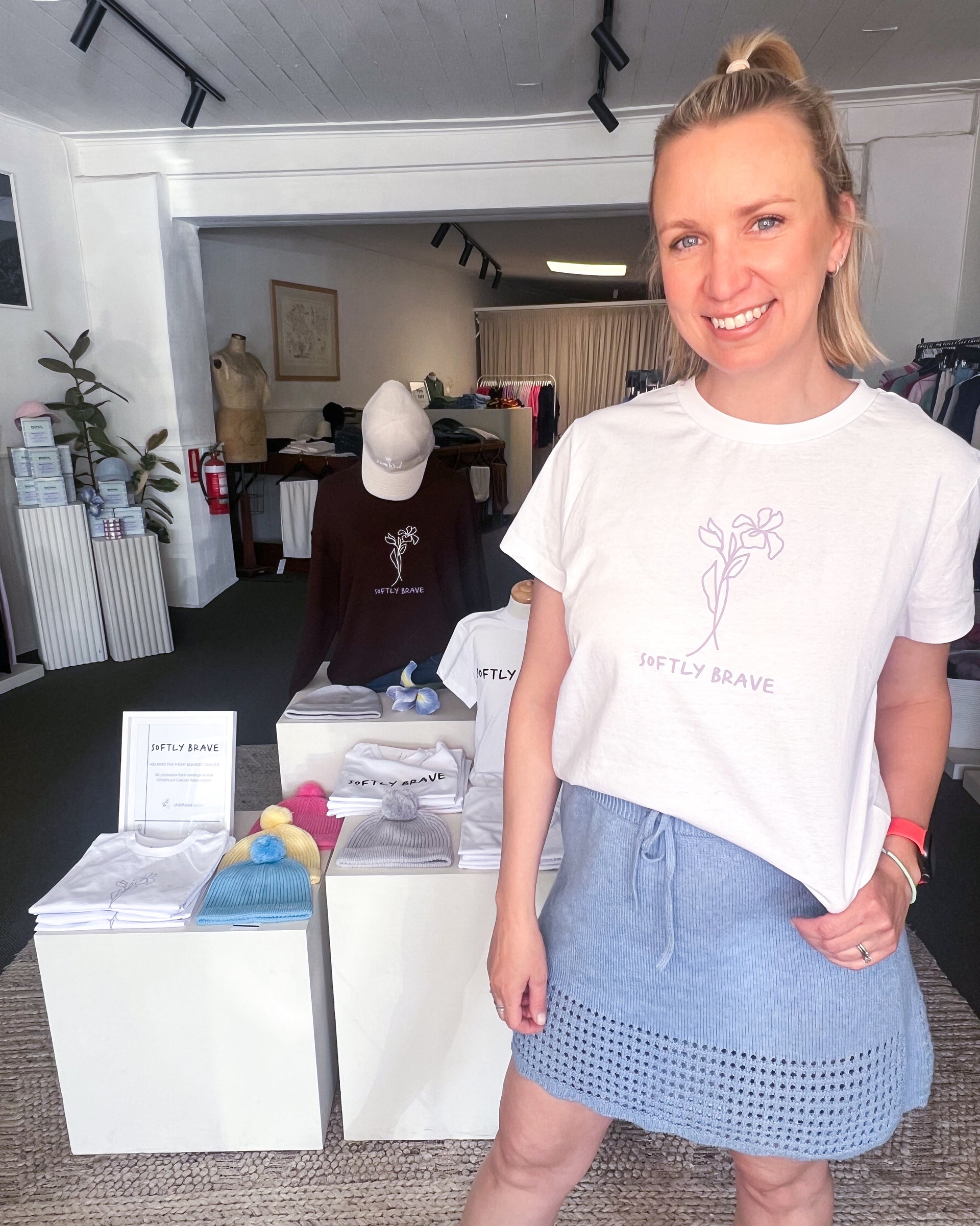 Softly Brave is an initiative of Iris & Wool and the brainchild of designer and wool producer, Emily Riggs. A survivor of Non-Hodgkin’s Lymphoma when she was just 9 years old, Emily understands only too well the devastating effect cancer has on children and their families.