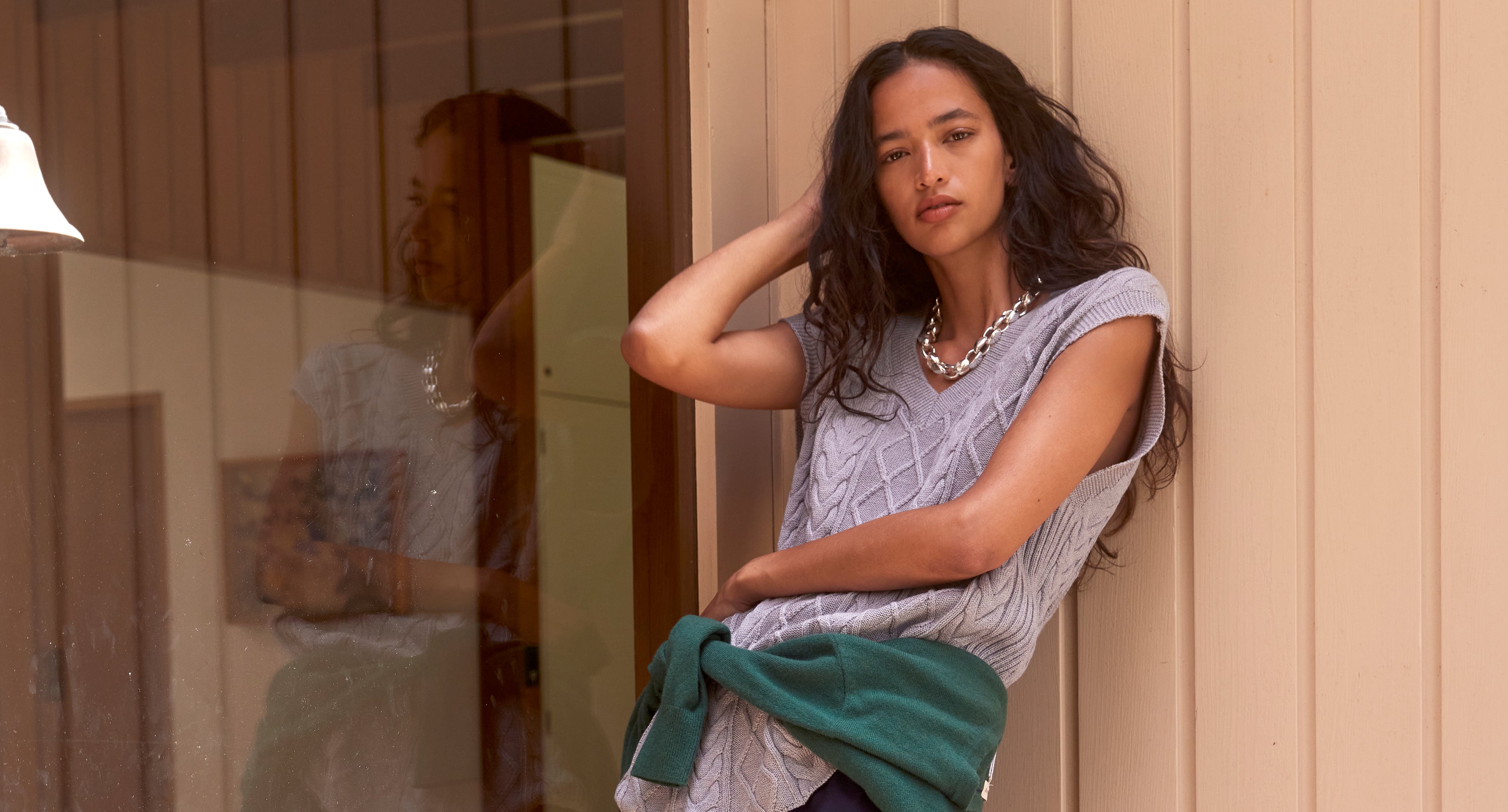 This season also sees a focused expansion of Iris & Wool accessories with wool caps and triangle scarves. Designed to complement the knitwear story, each piece is crafted with the same attention to tone and texture, made to layer softly into your winter wardrobe. Step into the season with pieces that embody restraint, balance and the unmistakable feel of Iris & Wool.