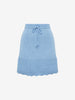 Embrace subtle charm with the Margot crochet mini skirt in sky blue, crafted from a premium wool and cotton blend. This blue crochet skirt features a soft jersey waistline with a drawstring, along with a crochet hem and scalloped edges for a touch of elegance. Pair this mini skirt with the Margot Sweater or a casual top for a fresh and versatile look. Available in sky blue, black, and cream.