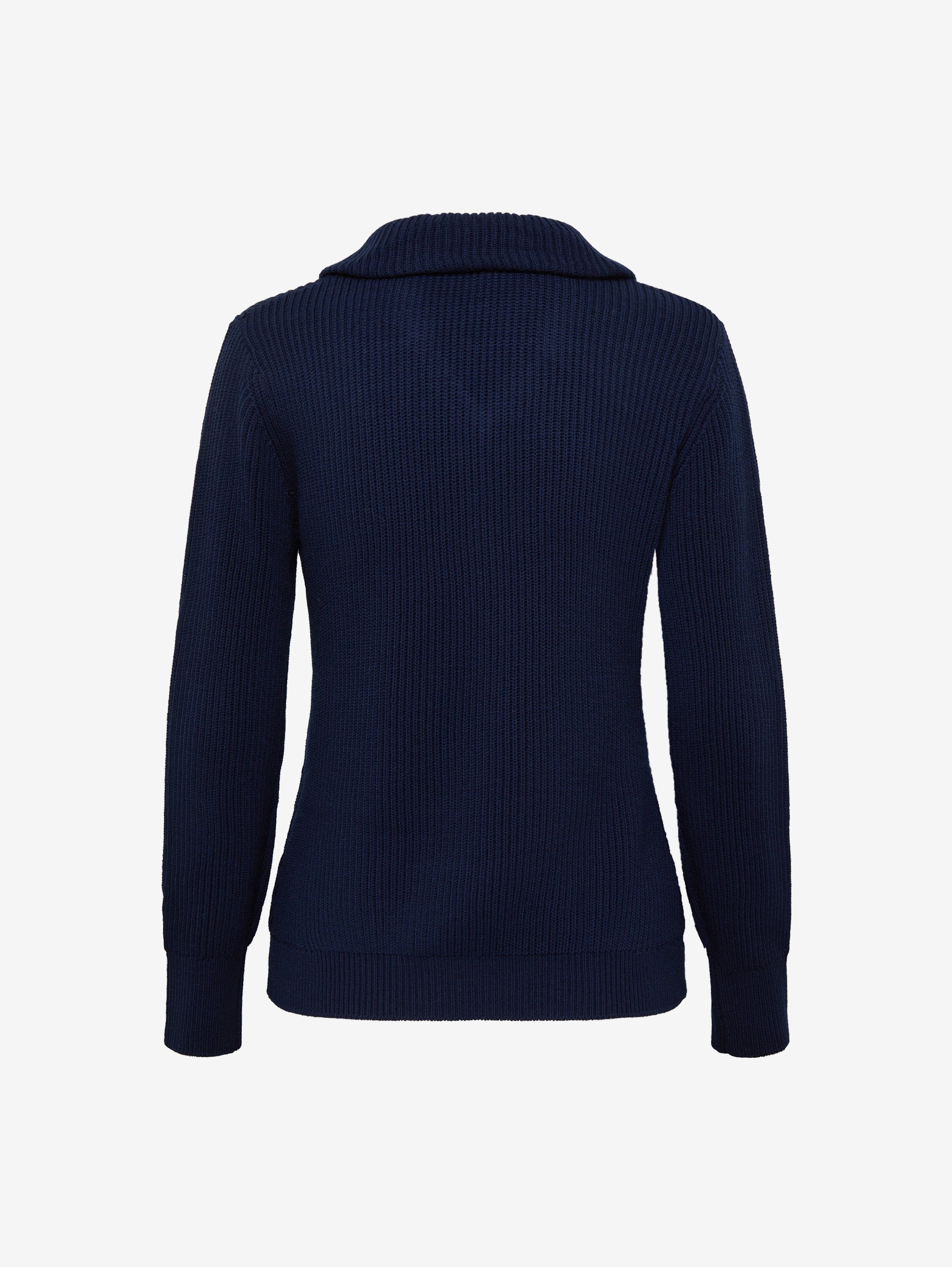 The deep navy hue brings sophistication and elegance, perfect for pairing with denim for a casual look or tailored trousers for a polished outfit. Naturally lightweight yet insulating, this ladies wool jumper is the ultimate cool-weather companion.