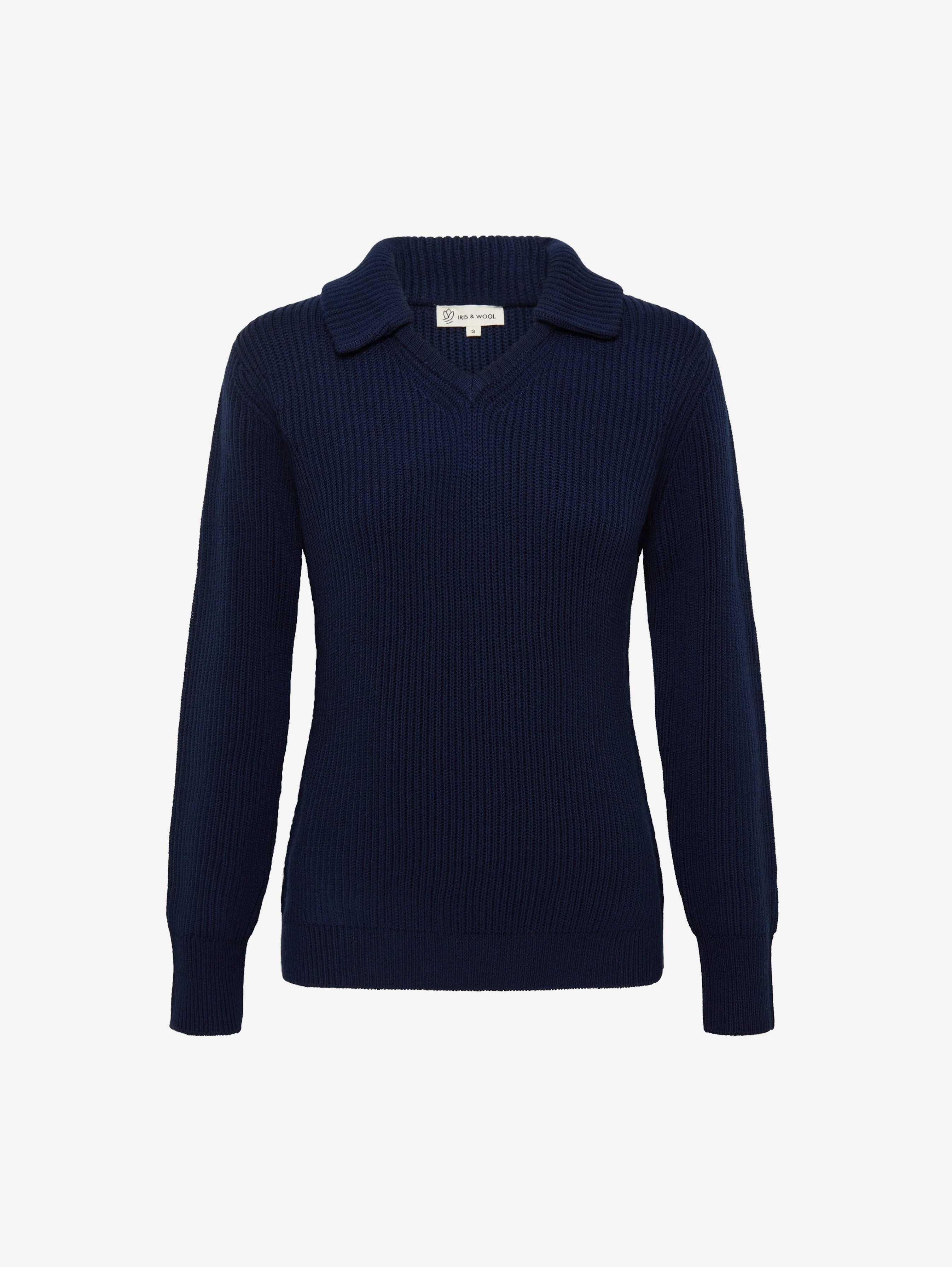 Collar V Neck Rib Sweater Knitwear Iris and Wool