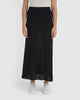 Embrace the elegance of the Ruby Pointelle maxi skirt in black, crafted from a premium wool and cotton blend. This black maxi skirt features a soft jersey waistband with a drawstring and a delicate ribbed pointelle stitch that transitions to a flowing lighter-weight pattern. Perfect for pairing with the Ruby Top for a coordinated maxi skirts set look, this knitwear piece offers versatile styling from day to night. Available in black, cream, and maize.